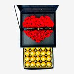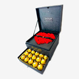 🍫 Delight in Decadence 🍫 But that's not all! The Sweet Dreams Box isn't just about roses; it's a symphony of sensations. Nestled amidst the blooms are 25 Ferrero Rocher premium chocolates, creating a delightful blend of passion and indulgence. Let your taste buds dance with joy as you savor the rich, velvety flavors, perfectly complementing the floral charm.